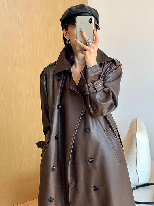 SAVE 50%Women's Leather Trench Coat Brown