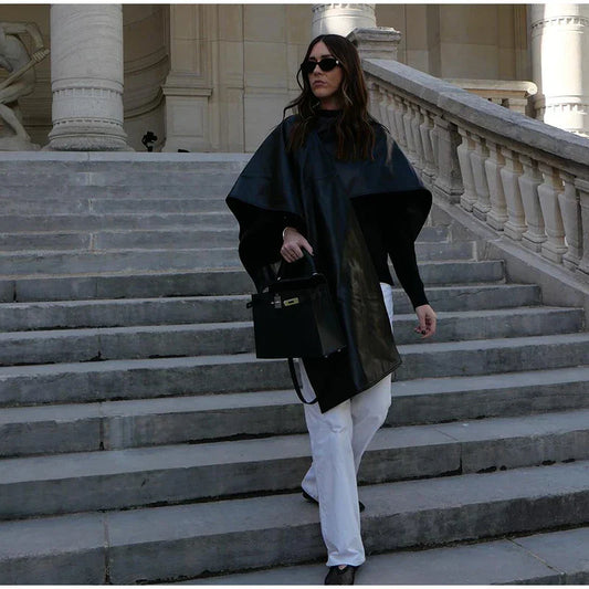 SAVE 50%Women's Leather Cloak Jacket Black