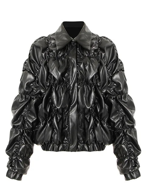 SAVE 50%Women's Leather Puffer Jacket Black