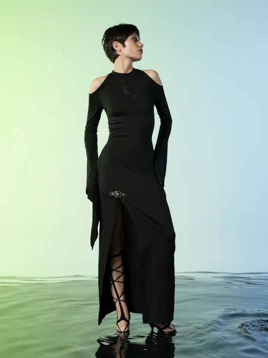 Gothyx® Lunar Edge – Cold Shoulder Moon Slit Dress