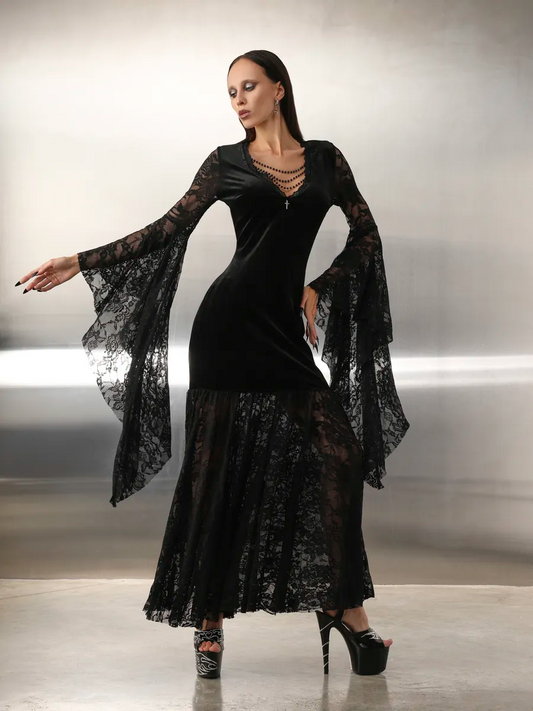 Gothyx® Nocturne Empress – Velvet & Lace Gothic Gown