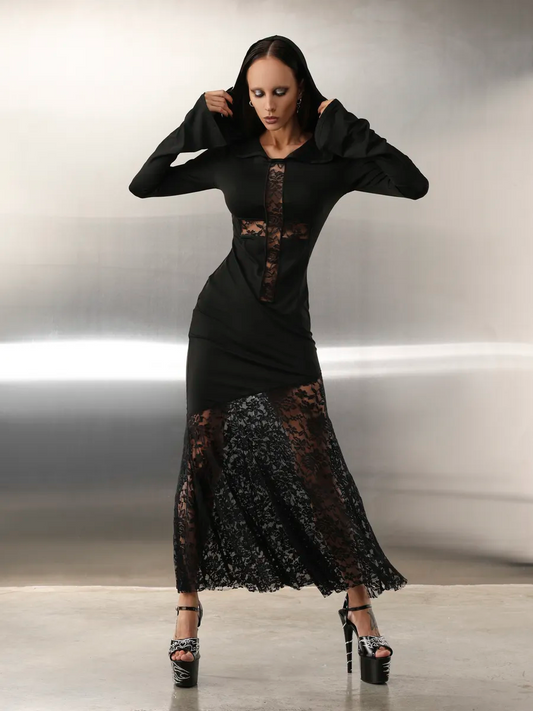 Gothyx® Cathedral Bloom – Sheer Panel Gothic Lace Gown