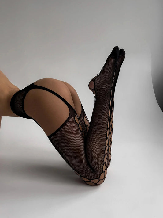Rhinestone Fishnet Suspender Stockings