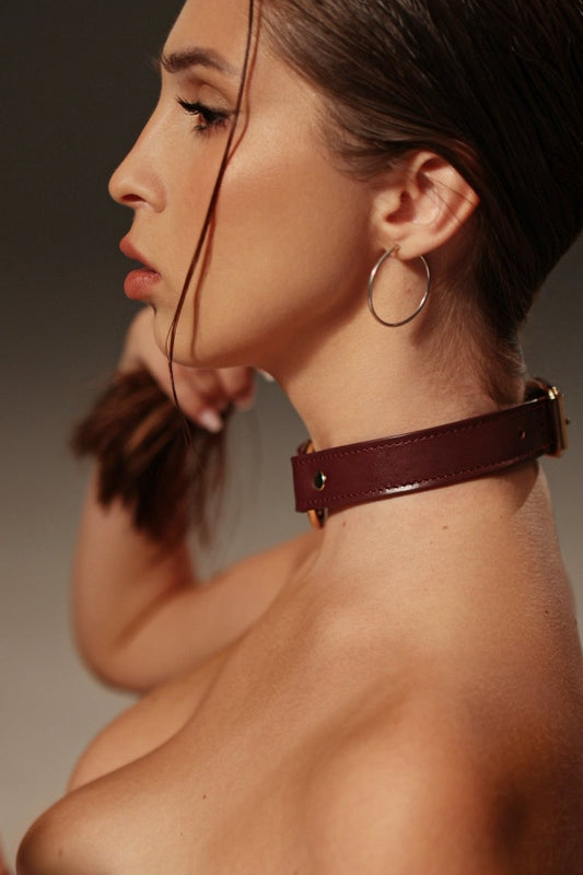 Boldessa® Burgundy&Black Cuff and Collar Set 2in1