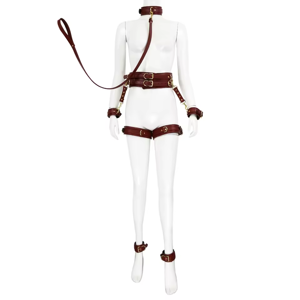 A masterpiece of power and elegance, the Set 5in1 "Regal Bond" is designed for those who demand sophistication in their desires. Featuring a high-gloss patent finish and premium metal hardware, this exquisite set blends luxury with dominance, offering both beauty and restraint in perfect harmony.